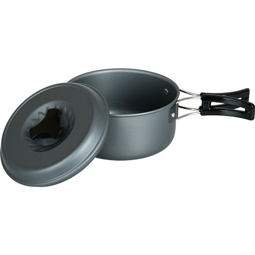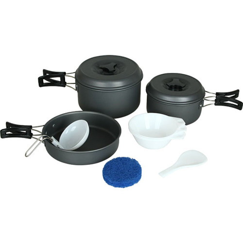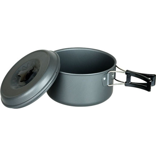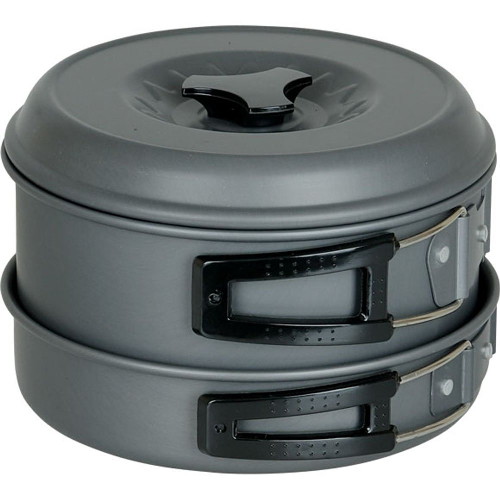 Плотно прилегающие крышки кастрюль ускоряют процесс приготовления пищи и оберегают еду от мусора и насекомых. Складывающиеся, отделанные пластмассой ручки кастрюль и сковородки позволяют компактно упаковать набор после использования.
