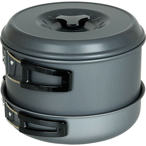 Плотно прилегающие крышки кастрюль ускоряют процесс приготовления пищи и оберегают еду от мусора и насекомых. Складывающиеся, отделанные пластмассой ручки кастрюль и сковородки позволяют компактно упаковать набор после использования.