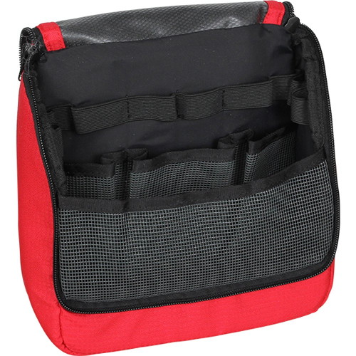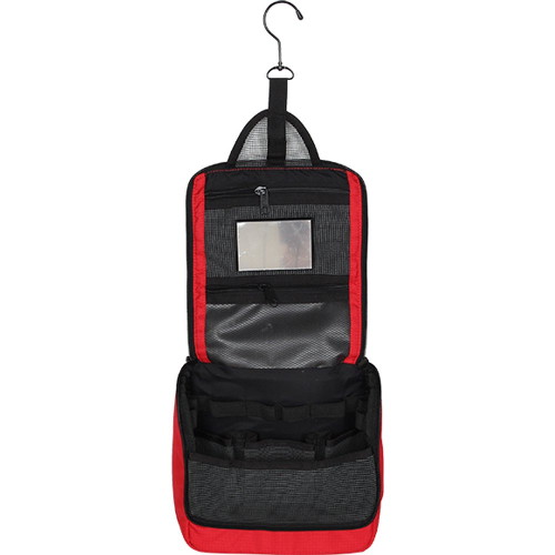 Основное отделение имеет карманы из сетки, позволяющие вертикально размещать флаконы с шампунем и другими гигиеническими средствами.