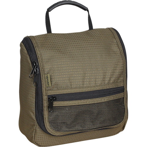 Основное отделение имеет карманы из сетки, позволяющие вертикально размещать флаконы с шампунем и другими гигиеническими средствами.