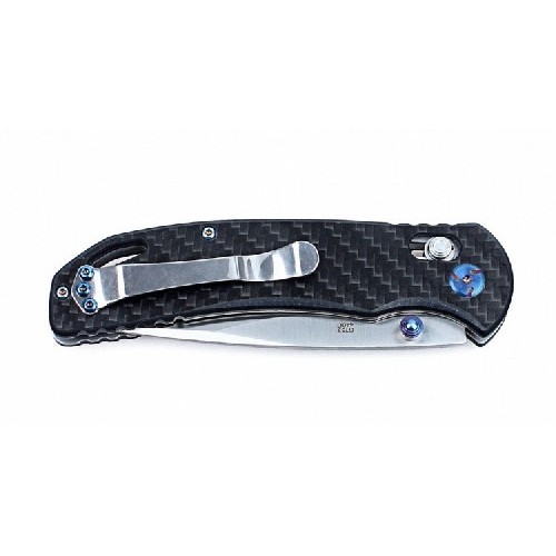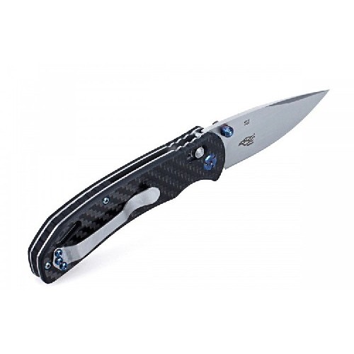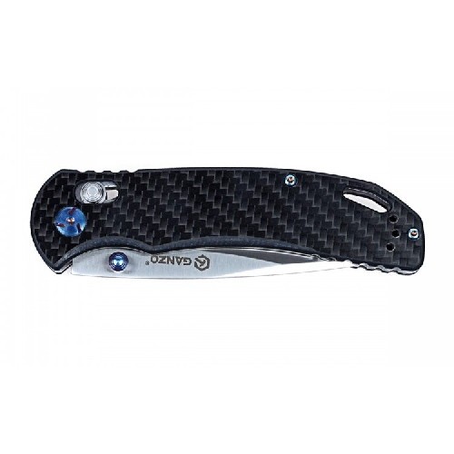 В качестве материала для ручки ножа используется современный композитный материал — углепластик, также известный как карбон. Он гораздо прочнее обыкновенного пластика, хотя остается таким же лёгким. Этот материал позволяет не бояться за целостность рукоятки ножа при выполнении работ под нагрузкой или случайных ударах. Рукоятка в модели Ganzo F7531-CF покрашена в чёрный цвет. К ней прикреплена клипса из металла, а в хвостовой части сделано небольшое отверстие для шнурка.