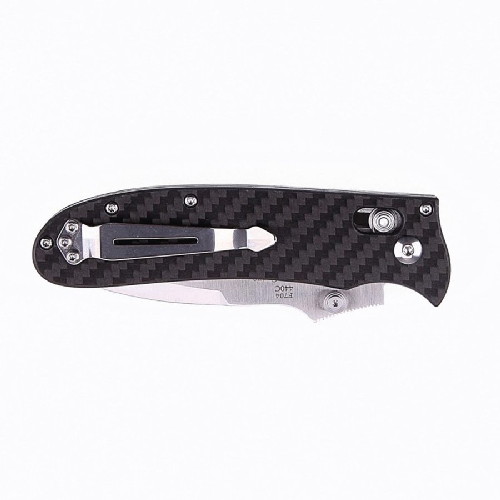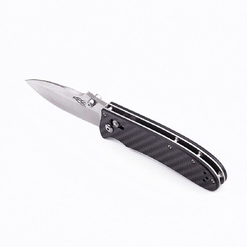 Нож F7041-CF сразу понравился всем, как только появился на рынке. Он универсален и прочен, производитель продумал каждую мелочь. Форма клинка классическая – drop-point, с приспущенным к острию обухом. Изготавливается он из высококачественной стали 440С с твёрдостью 58 HRC. Фиксирует клинок в закрытом и открытом положении механизм G-Lock, который показывает высочайшую надёжность.