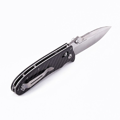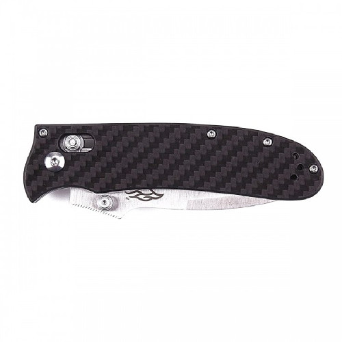 F7041-CF от Ganzo стильно выглядит, но при этом практически идеально сбалансирован. В рабочем положении его длина составляет 20 сантиметров, лезвие – 8,5 см. На обухе есть особые насечки, предназначенные для рабочего пальца, что значительно повышает удобство работы и сцепление.