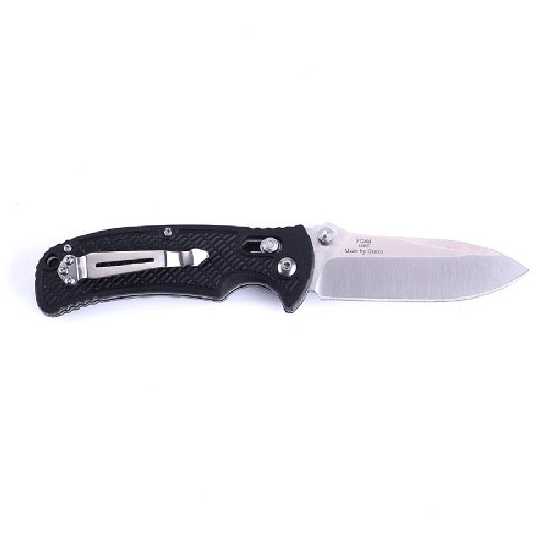Основной материал для производства ножа — это нержавеющая сталь 440С, которая получила широкое распространение в ножевой индустрии. Это одновременно прочный и стойкий к коррозии сплав. Твердость стали 440С оценивается на уровне +-58 единиц по шкале Роквелла. Нож из этого металла не нуждается в особенно тщательном уходе и долгое время остается острым после затачивания. В данной модели длина лезвия составляет 8,5 см при общей длине ножа 19 см. Но с закрытым клинком габариты инструмента уменьшаются до 10,5 см в длину. Клинок гладко заточен, что позволяет работать этим ножом с большинством распространенных материалов.