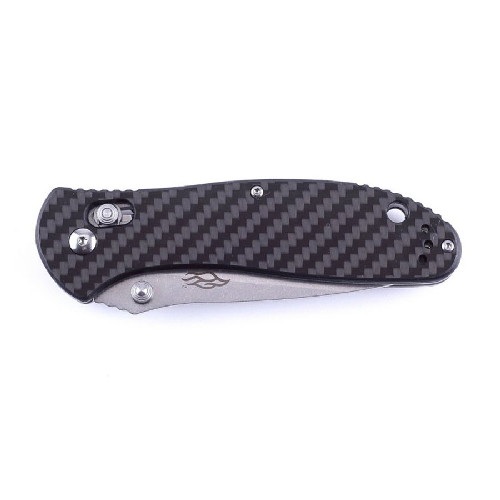 Для рукоятки сделаны две карбоновые накладки. Этот материал выбран из-за прочности и хороших эксплуатационных данных. По своей структуре он является композитным, а потому выдерживает высокие нагрузки. Карбоновое волокно не впитывает воду и не выгорает на солнце.
