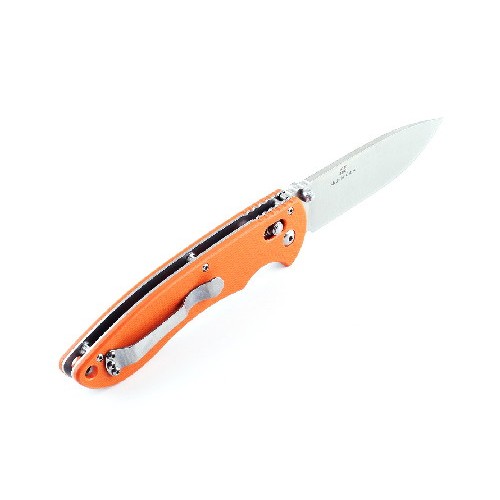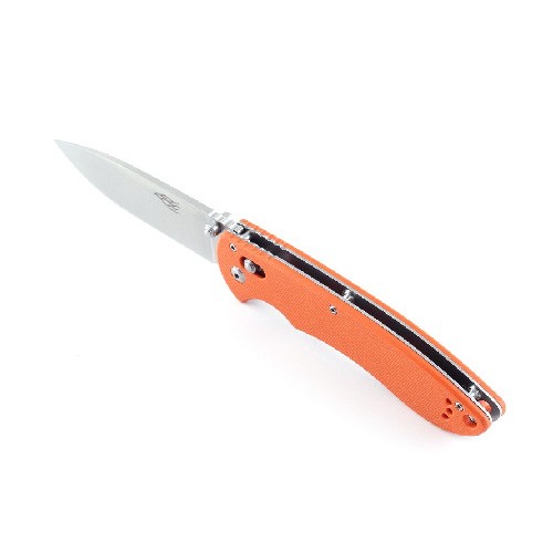 Рукоятка ножа имеет удобную для длительного удержания в ладони форму. Накладки для нее сделаны из стеклопластика G10. Этот вид материала прочнее, чем известные ранее пластики, но так же долговечен и практичен. К тому же, пластиковая рукоятка позволяет уменьшить вес ножа, сделав его более удобным для путешествий. Нож весит 155 грамм.