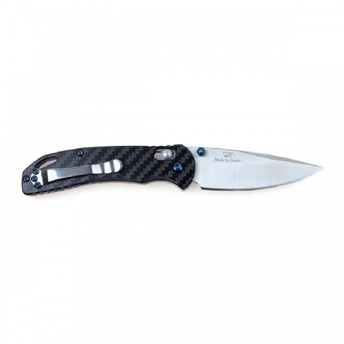 Лезвие этого ножа не боится воздействия воды и приспособлено для работы с большим количеством материалов разной твердости. Оно сделано из сплава 440С, объединившего защищенность от коррозии с довольно высокой твердостью металла. Размер лезвия составляет 77 мм. Оно изготовлено в классической форме clip-point и ровно заточено. Именно такой вариант заточки не только считается универсальным, но и легче всего подтачивается в походных условиях. Нож отполирован по методу satin wash, из-за чего на клинке заметны штриховые следы от прохода абразивом.