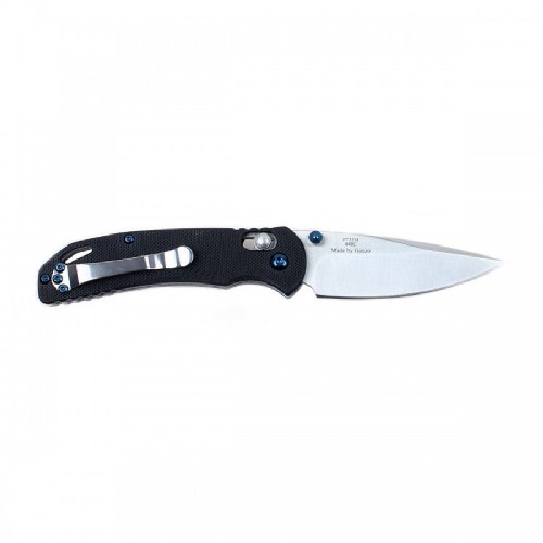 Лезвие этого ножа не боится воздействия воды и приспособлено для работы с большим количеством материалов разной твердости. Оно сделано из сплава 440С, объединившего защищенность от коррозии с довольно высокой твердостью металла. Размер лезвия составляет 77 мм. Оно изготовлено в классической форме clip-point и ровно заточено. Именно такой вариант заточки не только считается универсальным, но и легче всего подтачивается в походных условиях. Нож отполирован по методу satin wash, из-за чего на клинке заметны штриховые следы от прохода абразивом.
