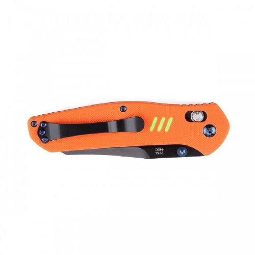 На рукояти размещены три ярко-зелёные полосы, накапливающие свет. Благодаря этому, даже ночью на рыбалке или охоте нож будет легко найти. Также на рукояти размещена съёмная клипса, позволяющая прицепить нож на карман или ремень. За фиксацию в закрытом состоянии отвечает замок G-Lock, который максимально надёжен и безопасен.