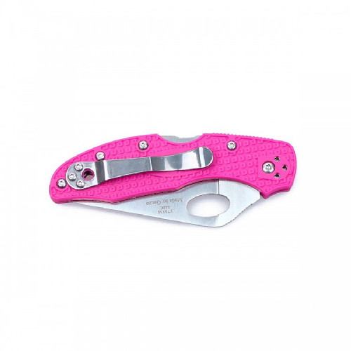 Рукоятка полностью вписывается в общий энергичный дизайн. Она сформирована при помощи двух накладок из армированного стекловолокном нейлона, который пятью болтами прикручены к стальной базе. Также на ручке ножа есть металлическая клипса, положение которой пользователь может менять.