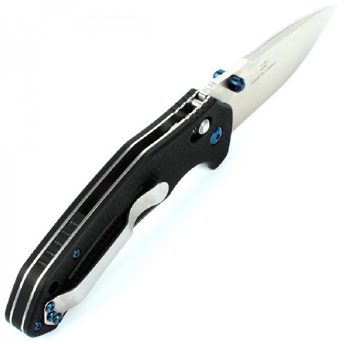 Рукоять состоит из стальных лайнеров и двух накладок из G10, закрепленных с помощью трех винтов. Используемый полимер обладает хорошей прочностью и не восприимчив к влаге. А за счёт фактурной поверхности и эргономичной формы рукояти, нож не выскальзывает из ладони даже при намокании.