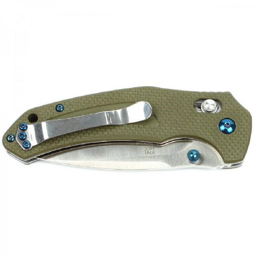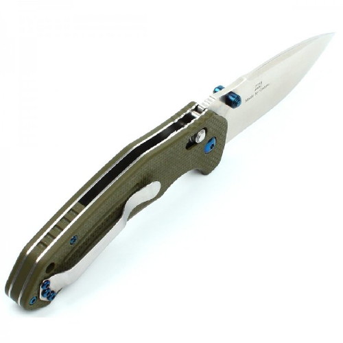 Рукоять состоит из стальных лайнеров и двух накладок из G10, закрепленных с помощью трех винтов. Используемый полимер обладает хорошей прочностью и не восприимчив к влаге. А за счёт фактурной поверхности и эргономичной формы рукояти, нож не выскальзывает из ладони даже при намокании.