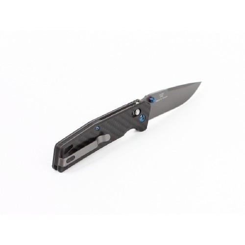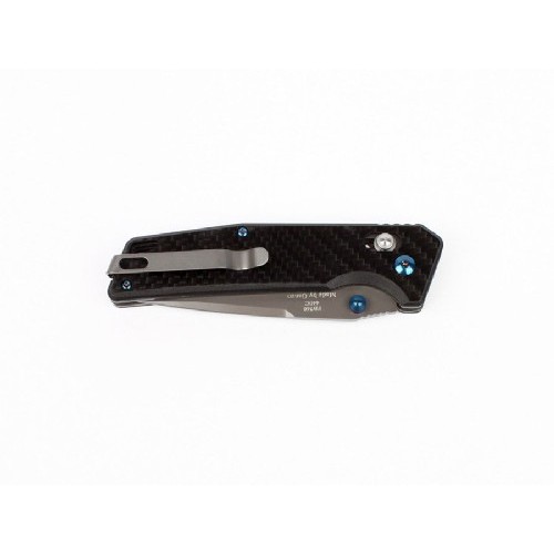 Его лезвие сделано из одного из лучших нержавеющих видов стали — 440С. Она не только успешно противостоит ржавлению, но и качественно сохраняет заточку. При этом, затачивается нож без особых трудностей. Для данного клинка производители выбрали полностью гладкую заточку, являющуюся универсальным вариантом для работы с разнообразными материалами. Длина ножа составляет 87 мм, чего также достаточно для его универсального использования. А толщина обуха данной модели составляет 3,3 мм. Темное покрытие на поверхности лезвия делает нож не только необычным с точки зрения дизайна, но и способным служить в тактических целях, поскольку такое покрытие устраняет образование бликов от солнца.