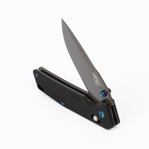 Его лезвие сделано из одного из лучших нержавеющих видов стали — 440С. Она не только успешно противостоит ржавлению, но и качественно сохраняет заточку. При этом, затачивается нож Firebird FB7603 без особых трудностей. Для данного клинка производители выбрали полностью гладкую заточку, являющуюся универсальным вариантом для работы с разнообразными материалами. Длина ножа составляет 87 мм, чего также достаточно для его универсального использования. А толщина обуха данной модели составляет 3,3 мм. Темное покрытие на поверхности лезвия делает нож не только необычным с точки зрения дизайна, но и способным служить в тактических целях, поскольку такое покрытие устраняет образование бликов от солнца.