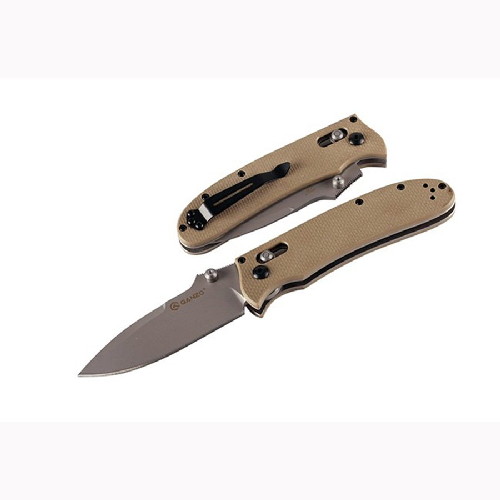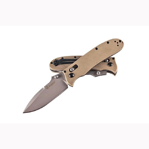 Ganzo 704 — очень удачная модель туристического ножа. Функциональный клинок классической формы с прямой заточкой выполнен из легированной высококлассной стали марки 440С (58-60 HRC) и фиксируется механизмом Axis Lock.
