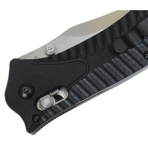 Также нож привлекает внимание удобной и износостойкой рукояткой, укрепленной специальным сплавом G10 (текстолит) и выполненной из материалов, обеспечивающих наилучшее сцепление с ладонью.