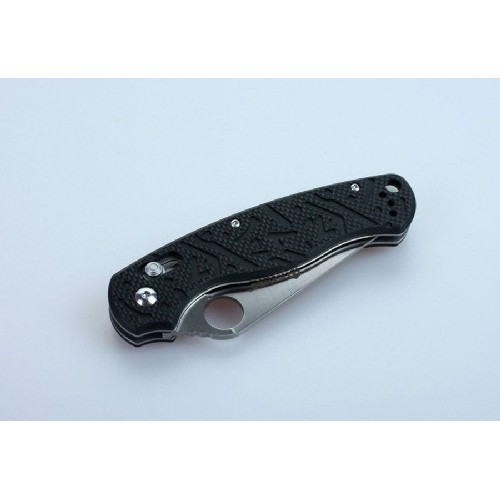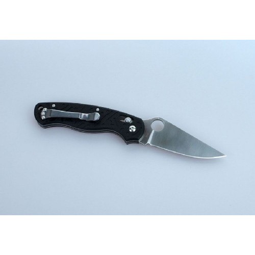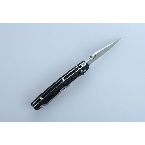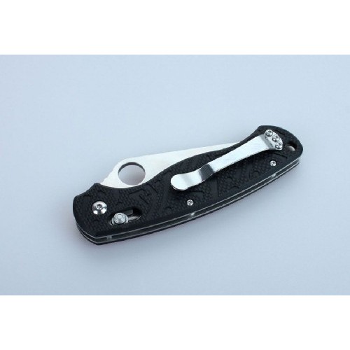 Ручка ножа оснащена накладками из прочного стеклопластика под названием G10. Это современный композитный материал, который очень долго сохраняет изначальные параметры прочности, цвета и сопротивляемости основным видам коррозии. Чтобы даже из мокрых рук нож не выскальзывал, на поверхность рукоятки нанесен фактурный рисунок, который отлично дополняет дизайн модели. Также на рукоятке закреплена металлическая клипса, которая выступает дополнительной страховкой от потери ножа, помогая закрепить его в кармане или на поясном ремне.