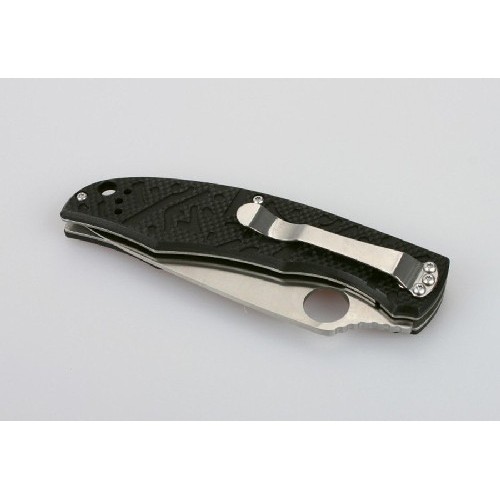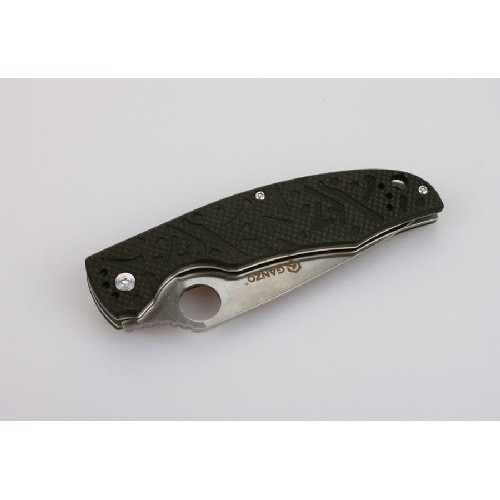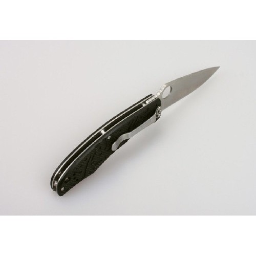 Металл, который используется для ножа — это нержавеющая сталь 440С. Из своей группы сплавов она наиболее качественная и может похвастать сбалансированностью таких качеств, как твердости, простота заточки, сопротивляемость коррозии. Конечно, нож из такой стали нуждается в уходе, но для него достаточно минимального внимания со стороны владельца, чтобы оставаться таким же острым и хорошо отшлифованным, как и сразу же из коробки. Лезвие ножа имеет гладкую режущую кромку, которую легко подновить при помощи самой простой точилки. Толщина клинка в самой широкой части равна 3,3 мм. А его полная длина достигает 9,5 см. С приближением к рукоятке клинок существенно расширяется. На этом участке расположено круглое отверстие, которое служит для открывания сложенного ножа. Чтобы нож не открылся, когда этого не требуется, в него встроен замок под названием Liner-Lock. Несмотря на свою простую конструкцию, этот замок получил статус одного из наиболее надежных.