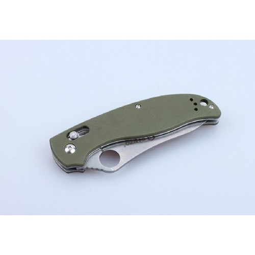 Производители снабдили нож всем необходимым, чтобы он прекрасно служил во время отдыха на природе и был полезен в городских условиях. Для лезвия производители избрали сталь 440С из категории нержавеющих сплавов. Она считается лучшей в своей серии, поскольку уравновешивает наиболее важные для ножевого металла характеристики. Сталь переносит контакты с водой, не ржавея, но в ней содержится достаточно много углерода, чтобы твердость закалки можно было довести до 58 HRC. Поэтому ножи из нее достаточно долго не затупляются. Ganzo G733 гладко заточен, а потому для ухода за ним подойдет практически любая карманная или стационарная точилка. Поверхность клинка обработана популярным в настоящее время методом Stone Wash. В результате, лезвие становится практически матовым, хотя и отражает некоторые солнечные лучи. Но важно, что мелкие дефекты, такие как царапины, на его поверхности гораздо менее заметны.