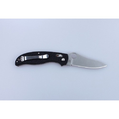 Основной материал ножа — нержавеющая сталь, из которой изготовлен клинок. Нож из такого металла устойчив к появлению ржавчины даже тогда, когда у его владельца нет возможности тщательно следить за чистотой и сухостью клинка. Хотя, конечно, минимальный уход ему необходим. Помимо того, сталь довольно просто затачивается и хорошо сохраняет режущую кромку острой. Поэтому клинок длиною 9,1 см удобно использовать для всех основных видов работ, актуальных во время поездок на природу. Его толщина — 0,33 см. Поверхность лезвия гладкая, но обработана методом Stone Wash, а потому выглядит почти матовой. Отверстие, которое находится в клинке ближе к рукоятке служит шпеньком.
