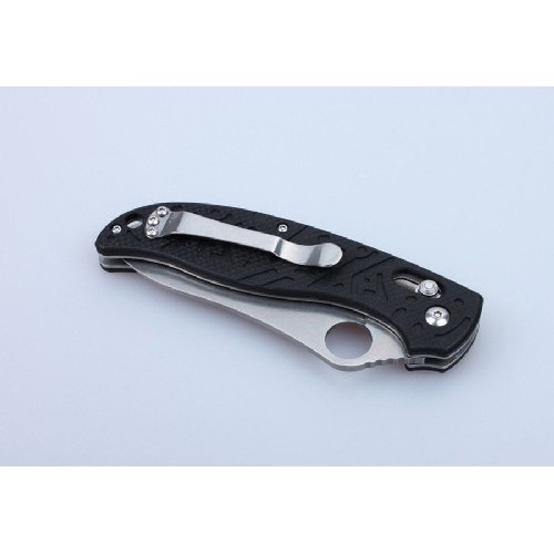 Рукоятка выполнена из пластика высокой прочности G10. Он имеет композитную структуру и очень долговечный в эксплуатации. На поверхность рукоятки помимо обычной накатки нанесен еще и более крупный декоративный узор «короед». С одной стороны рукоятки закреплена клипса из нержавейки, которая выполняет роль страховки при переносе ножа в кармане или же служит для его закрепления на ремне.
