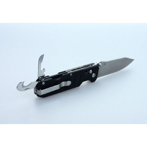 Помимо клинка, нож Ganzo G735 располагает также дополнительными инструментами. В торцевой части рукоятки расположен стеклобой, а кроме того, в нее встроена открывалка для бутылок и консервных банок, с инструментом, который зачищает провода, и резак для веревок, ремней и строп. С их помощью вы легко справитесь с задачами, которые могут возникнуть в чрезвычайной ситуации, а также легче выполните некоторые стандартные виды работ во время пребывания за городом.