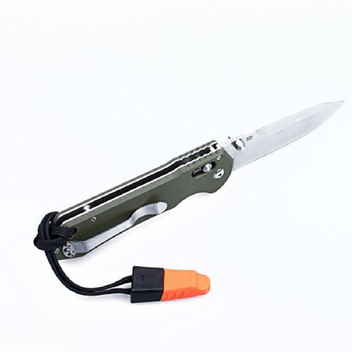 Помимо того, к рукоятке уже присоединен небольшой темляк, на другом краю которого имеется свисток. Так что нож Ganzo G7452-WS сделан максимально функциональным для туристов. С помощью свистка, можно дать знать о своем местонахождении товарищам, с которыми вы отправились на природу.