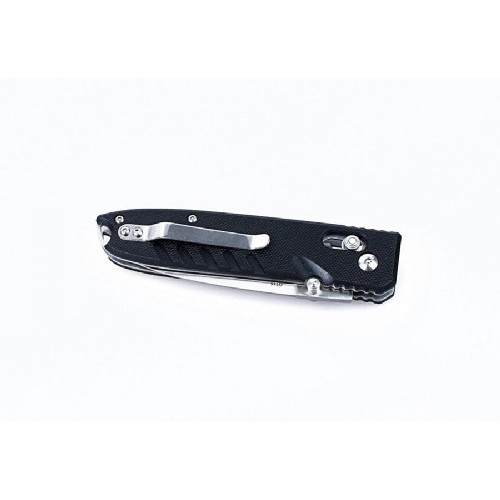 Рукоятка ножа хорошо ложится в ладонь. Ее форма очень сдержанная и аккуратная. Снизу имеется несколько небольших волн, которые защищают пальцы пользователя от проскальзывания на лезвие. Накладки на стальную основу сделаны из композитного пластика G10. С одной стороны к ним прикреплена стальная клипса.