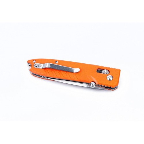 Рукоятка ножа хорошо ложится в ладонь. Ее форма очень сдержанная и аккуратная. Снизу имеется несколько небольших волн, которые защищают пальцы пользователя от проскальзывания на лезвие. Накладки на стальную основу сделаны из композитного пластика G10. С одной стороны к ним прикреплена стальная клипса.