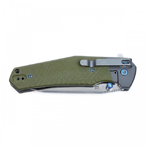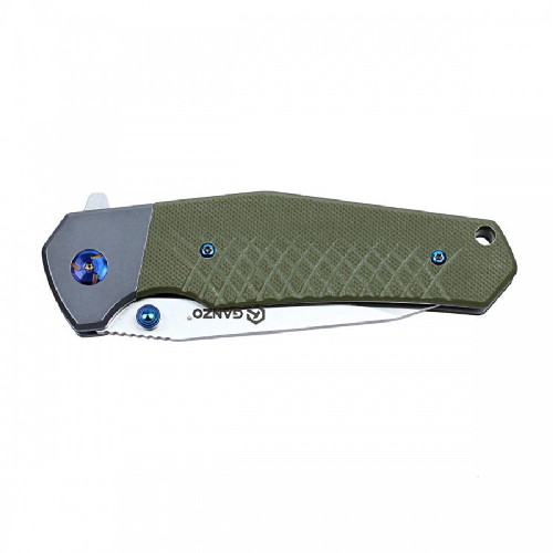 Модель Ganzo G7491 создавалась таким образом, чтобы использовать этот нож можно было в максимальном числе работ. Она сделана складною и удобно переносится просто в кармане. В то же время, лезвие ножа имеет длину 87 мм, чего достаточно для выполнения самых разных задач. Чтобы нож хорошо служил в полевых условиях, его клинок сделан нержавеющим. В качестве материала для этого, используется марка стали 440С. Защищенность от коррозии наряду с высокой твердостью металла, сделали ее действительно выгодным материалом для такого ножа. Пользователю достаточно вытирать клинок насухо и периодически подтачивать нож, чтобы он хорошо служил долгое время. С точки зрения универсальности, в данной модели клинку придана форма drop point. Он получил острый кончик, которым можно колоть и протыкать материалы, ровную режущую кромку. Боковая часть лезвия отшлифована способом сатинирования, что не уменьшает коррозийную стойкость стали, зато удачно скрывает царапины и позволяет избежать появления на металле видимых отпечатков. Снизу у основания клинка имеется небольшой выступ, который служит защитным барьером для пальцев во время работы с ножом и помогает достать лезвие сложенного ножа.
