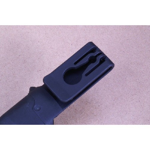Пластиковые ножны Morakniv Craftline Twin снабжены поясным крючком для крепления на ремне и клипсой для крепления еще одних ножен Morakniv поверх первых. Конструкция хорошо продумана и имеет надежную фиксацию, гарантирующую устойчивое положение на поясе самого чехла, вложенного ножа и подвешенного на внешнем креплении дополнительного нагруженного чехла.