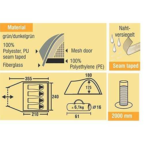 Просторная палатка Conway Best Camp на целую семью позволит вам комфортно расположиться на ночлег. Высота 175 см в спальне позволяет входить в палатку, только чуть наклонив голову. Все вещи можно сложить в обширный тамбур.