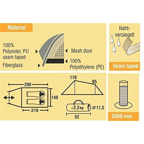 - Материал тента палатки Woodford имеет полиуретановое покрытие с водонепроницаемостью не менее 2000 мм водяного столба, что защитит вас от сильного дождя.