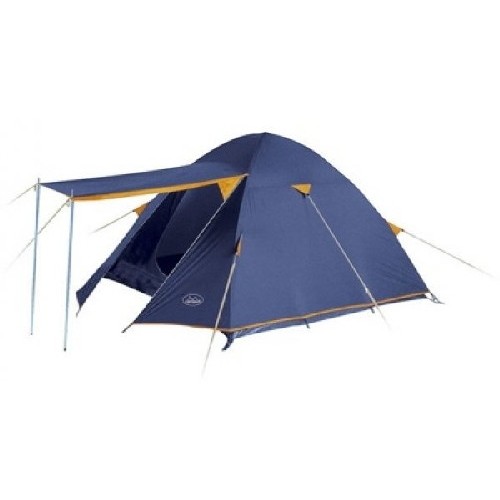 Универсальная палатка Campus Tour 4 для кемпинга с маленьким тамбуром-козырьком, который поддерживают дополнительные мачты. Рассчитана на четырех человек.