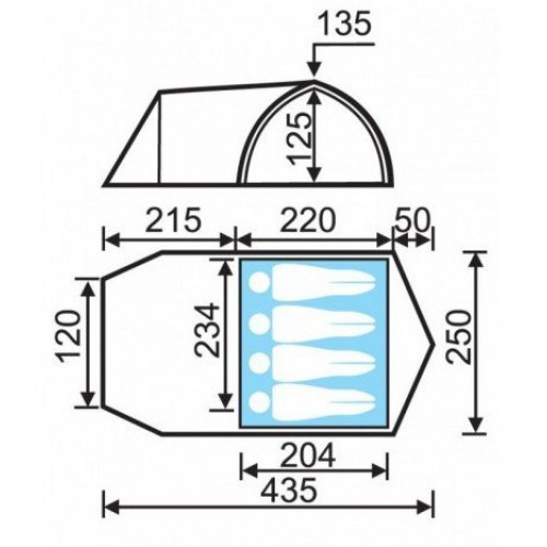 В палатке Campus Vail 4 Вы будете надежно защищены от дождя, ветра и холода.