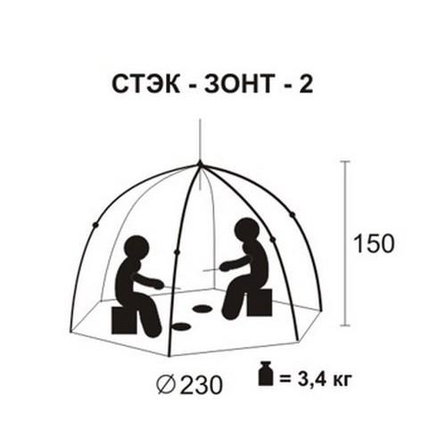 Палатка для зимней рыбалки Стэк ELITE 2 расчитана на двух человек, однако в ней будет комфортно расположиться и одному человеу с вещами.