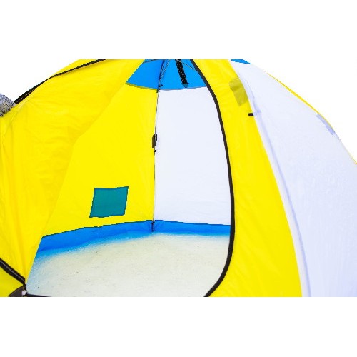 В верхней части купола рыболовной палатки имеется вентиляционное окно на молнии.