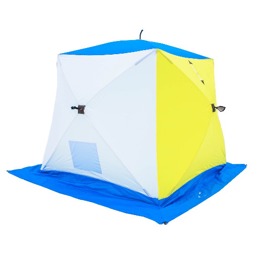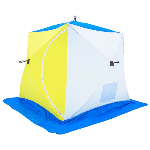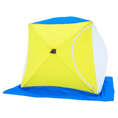 - Благодаря кубической форме, стены и потолок палатки выгнуты наружу, что значительно увеличивает внутреннее пространство и позволит удобно разместить внутри плиту, столик, рыболовные снасти и чувствовать себя свободно и комфортно двум рыбакам
