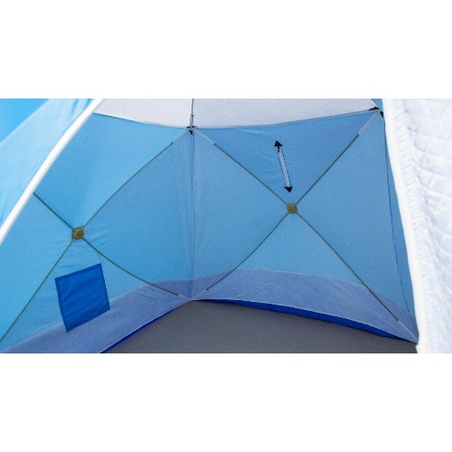 Верх палатки - вставка из дышащей ткани (типа брезент), что позволяет безопасно использовать любые (исправные) обогревательные плиты.