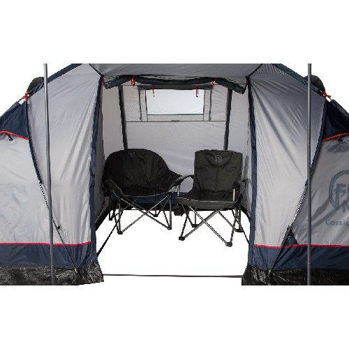 Классическая дуговая палатка с двумя комнатами и просторным тамбуром между ними. Отличный вариант для семьи или дружной компании. Функциональная проточная вентиляция обеспечивает внутреннее пространство свежим воздухом.