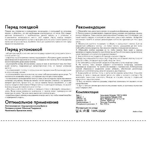 Материал тента | полиэстер (Taffeta 190T PU 4000 thermo printing) |