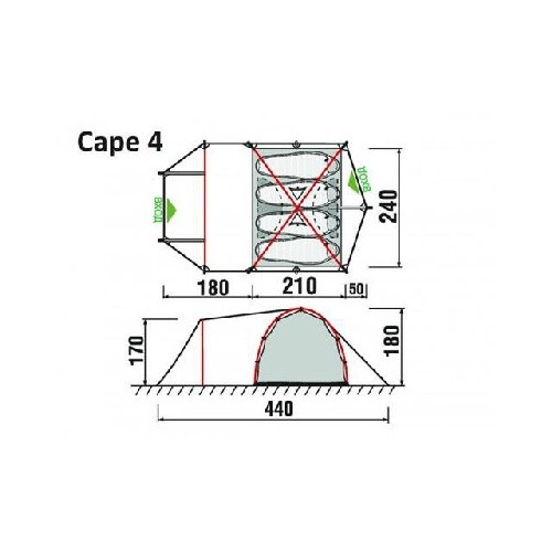 Комфортная двухслойная кемпинговая палатка GreenLand Cape 4 – это четырехместная палатка, которая оснащена тремя входами и двумя тамбурами. Швы данной модели проклеены. Москитная сетка на входах во внутреннюю палатку защищает от назойливых насекомых. Имеется ветрозащитная юбка по периметру и 6 штормовых оттяжек. Четыре вентиляционных окна обеспечат отличное проветривание и хороший отдых.