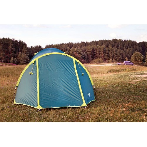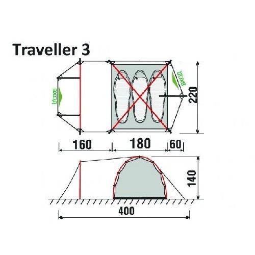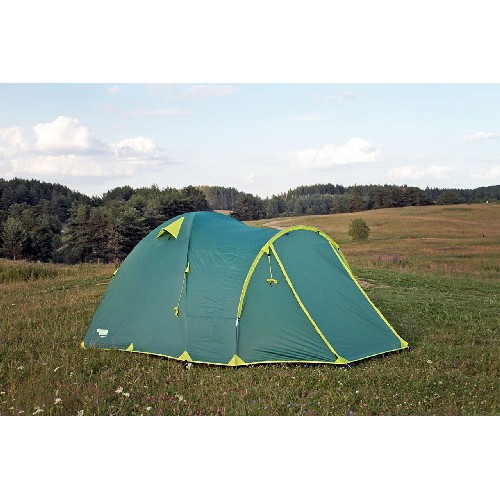 Green Land Traveller 3 кемпинговая палатка с тремя полноценными спальными местами, достойным набором функций, огромным тамбуром. входа и два тамбура, один из которых сделан компактным, а второй (1,6 м) подойдет для склада вещей и снаряжения, либо приготовления пищи. Тамбур оснащен двумя входами и вентиляционными окошками. Москитные сетки, проклеенные швы, двухбегунковые молнии, а также удобная полочка и два боковых кармана во внутренней палатке.