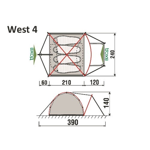 • Передняя стенка внутренней палатки сделана из ткани с PU-покрытием.
