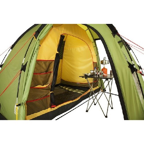 В палатке предусмотрен большой просторный тамбур. Там вы можете расположить много вещей и туристическое снаряжение. Модель имеет два входа и обзорное окно. Высокий потолок кемпинговой палатки ROVER 4 и большие двери позволяют чувствовать себя в ней удобно даже очень рослым людям.