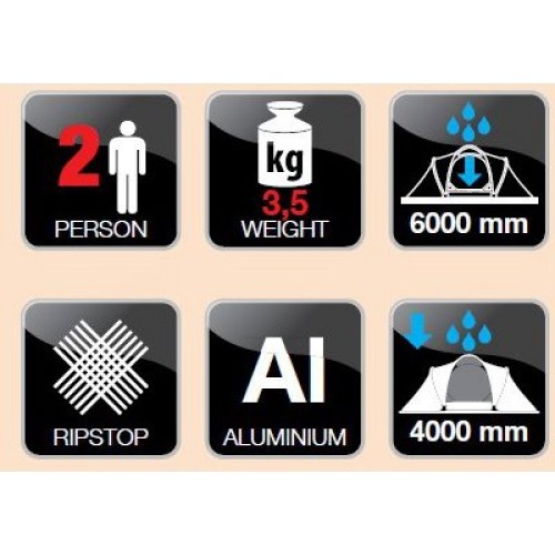 Палатка идеальна для тех, кто путешествует с большим количеством багажа. Облегченная алюминиевая конструкция каркаса, пол в палатке и в тамбуре из облегченного и прочного Oxford.