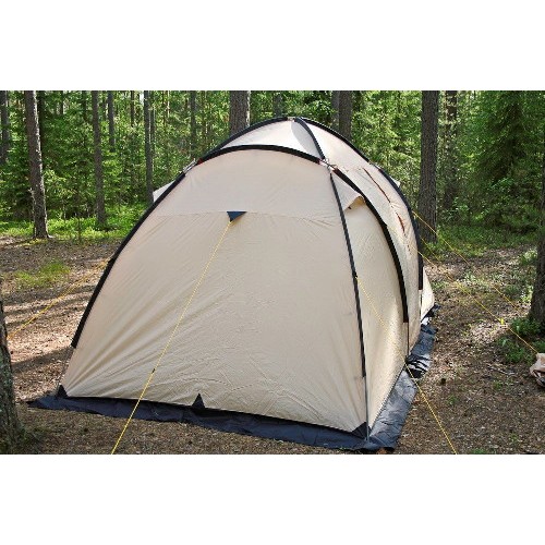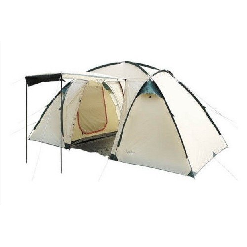 Комфортная куполообразная кемпинговая палатка имеет две комнаты и большой тамбур с двумя входами. Двери внутренних отделов полностью дублированы москитной сеткой, открываются вверх и не мешают при входе-выходе.