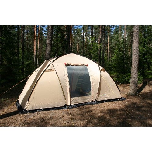 Палатка имеет две пары регулируемых вентиляционных окон с противоположных сторон в жилых отсеках. Основные дуги каркаса проходят через всю палатку, обеспечивая жесткость конструкции.
