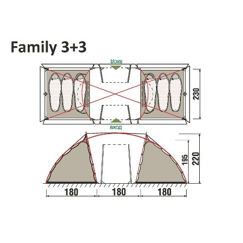 • Два входа и один центральный тамбур, москитная сетка на входах тента