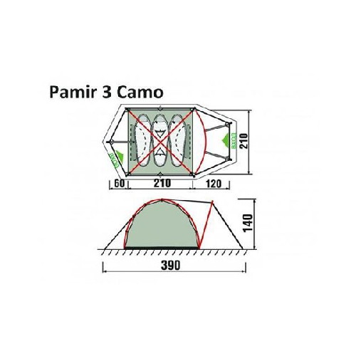 - Один тамбур увеличен для удобства размещения вещей или приготовления пищи в палатке
